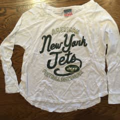 JETS JUNK FOOD GIRLS WHITE LONG SLEEVE- MED SIZE 8